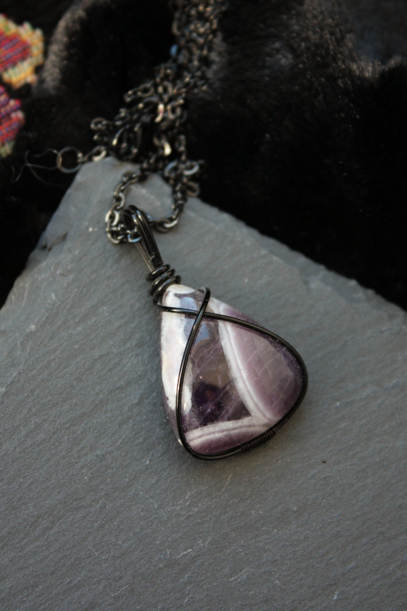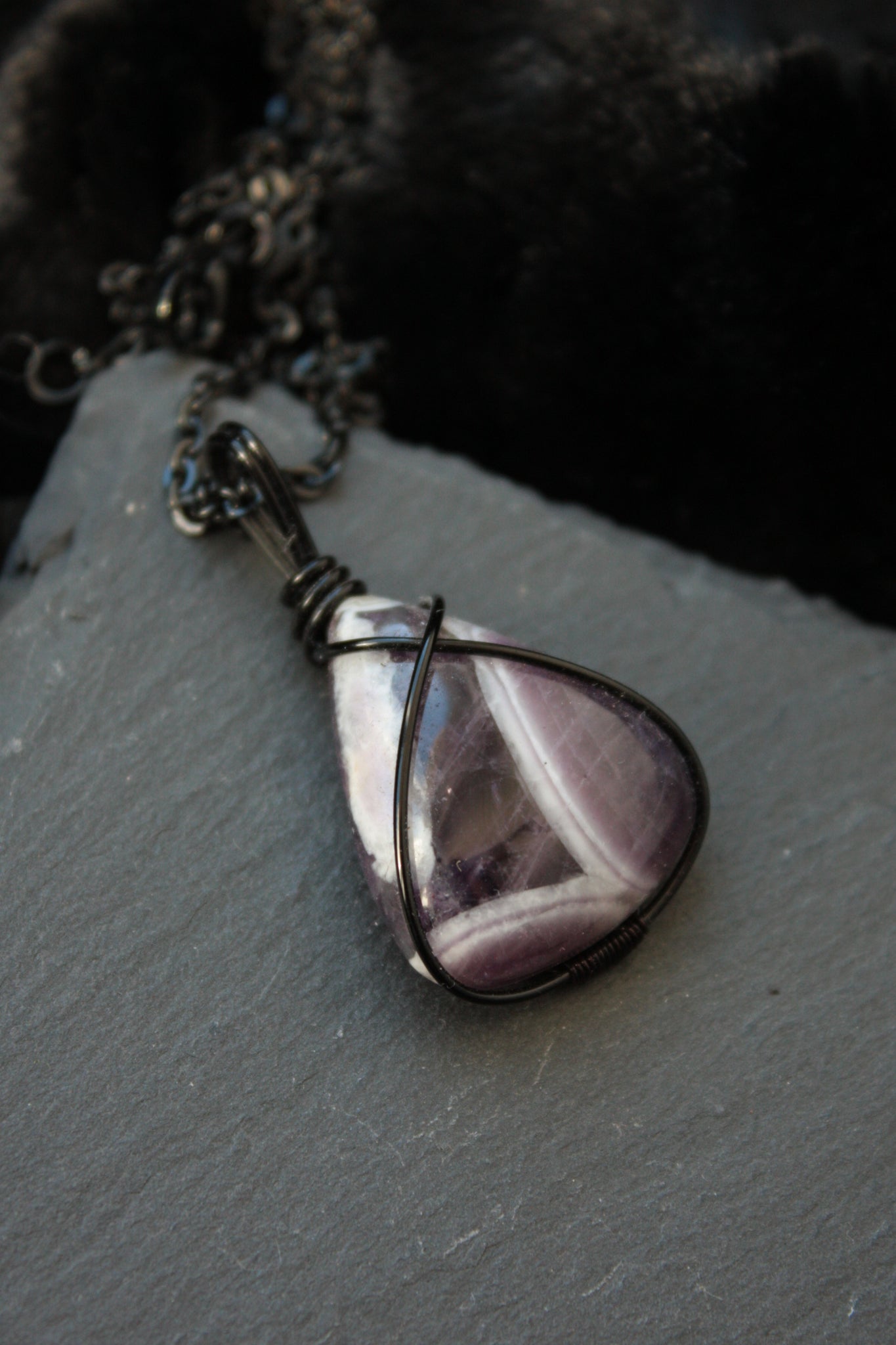 This pendant is handmade with black copper wire and comes with a 45cm black stainless steel chain.