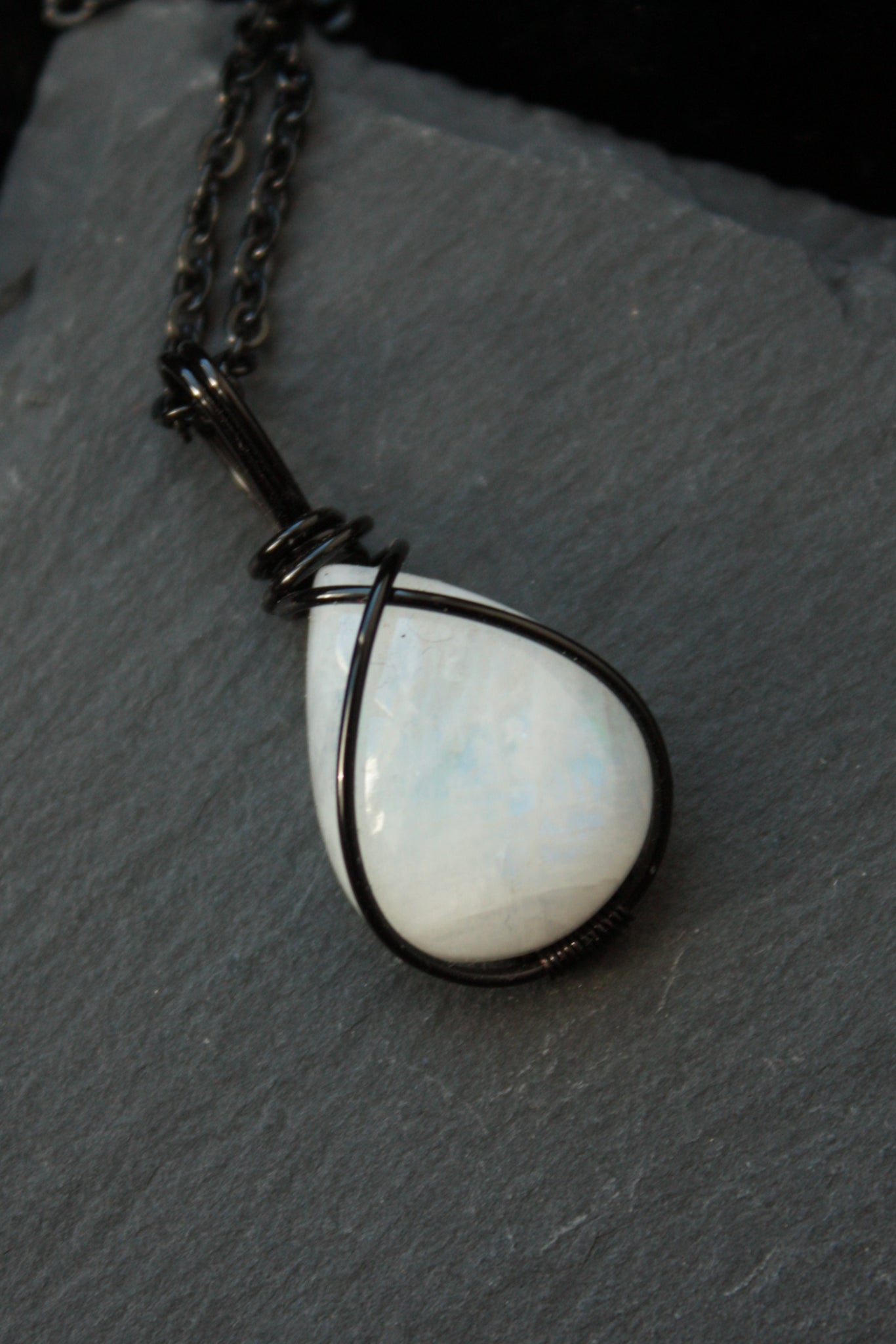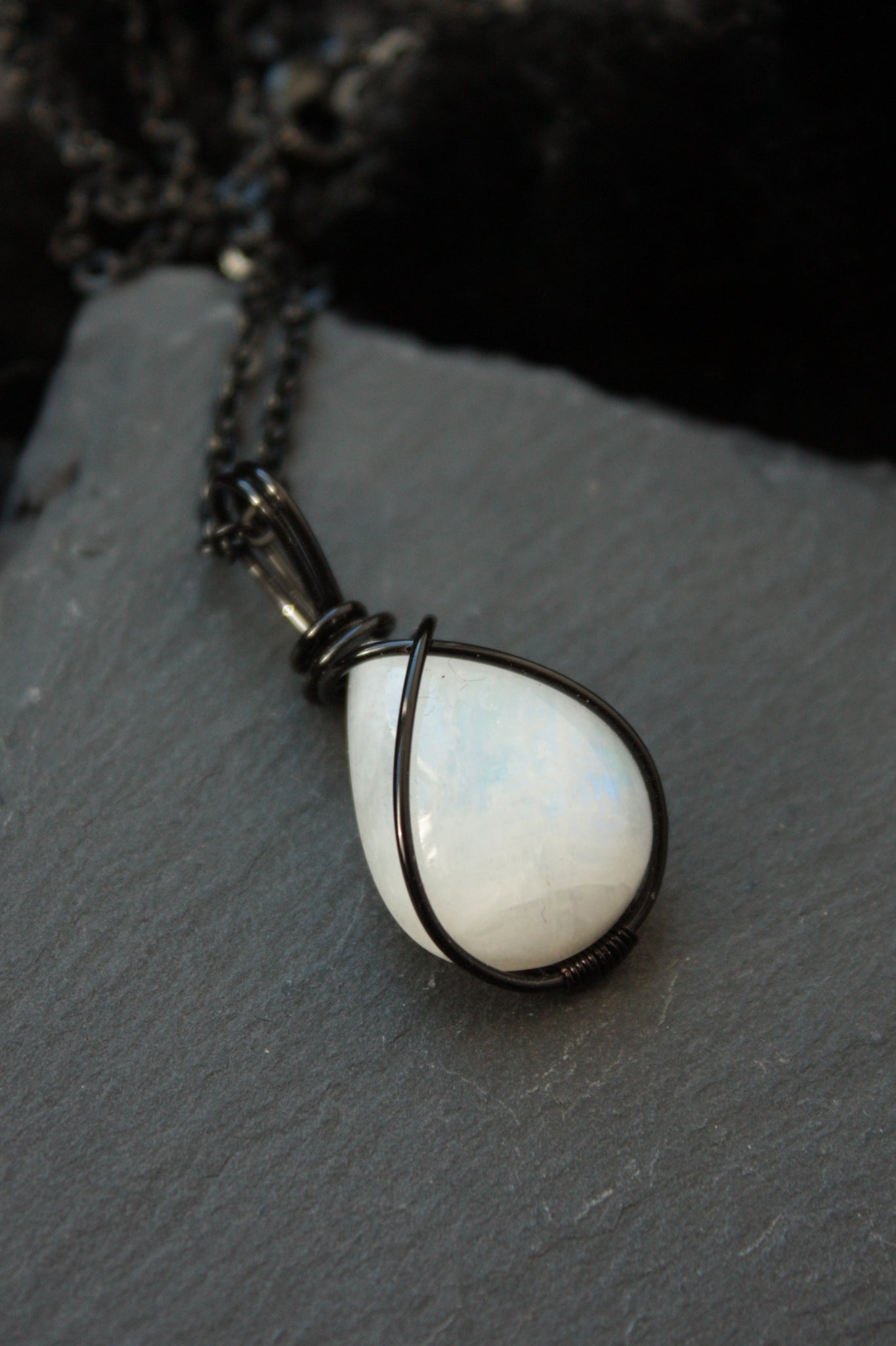 This pendant is handmade with black copper wire and comes with a 45cm black stainless steel chain.