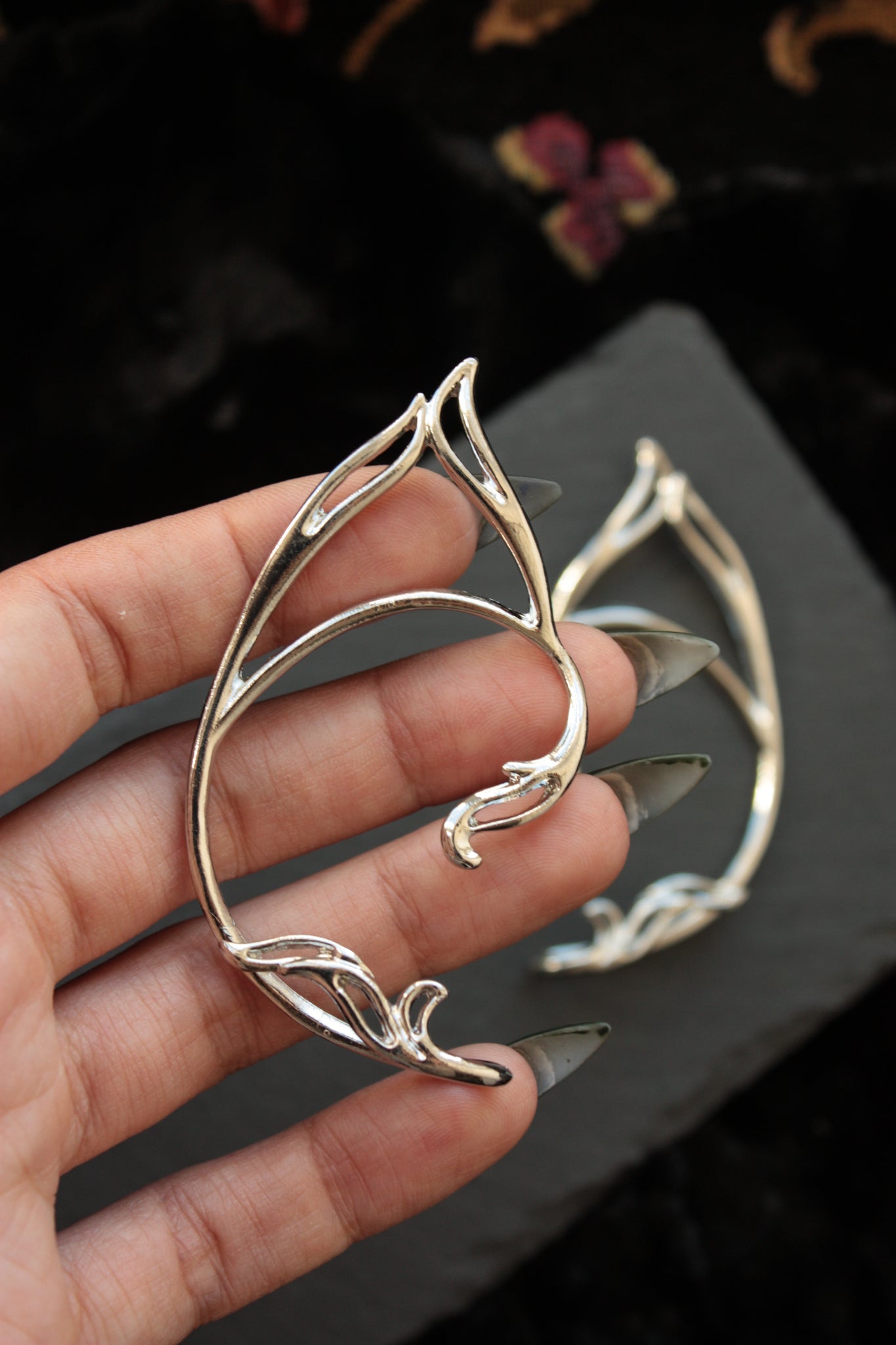 A pair of elven ear cuffs. No need to have your ears pierced, they just need to be adjusted to fit around the ear lobe
